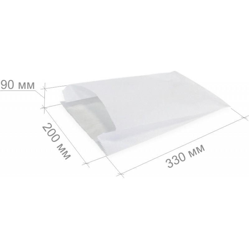 Бумажный пакет размером 330х200х90 мм без печати для хлебобулочных изделий.