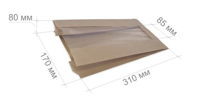 Крафтовый пакет для выпечки с окном 310х170х80 мм мм
