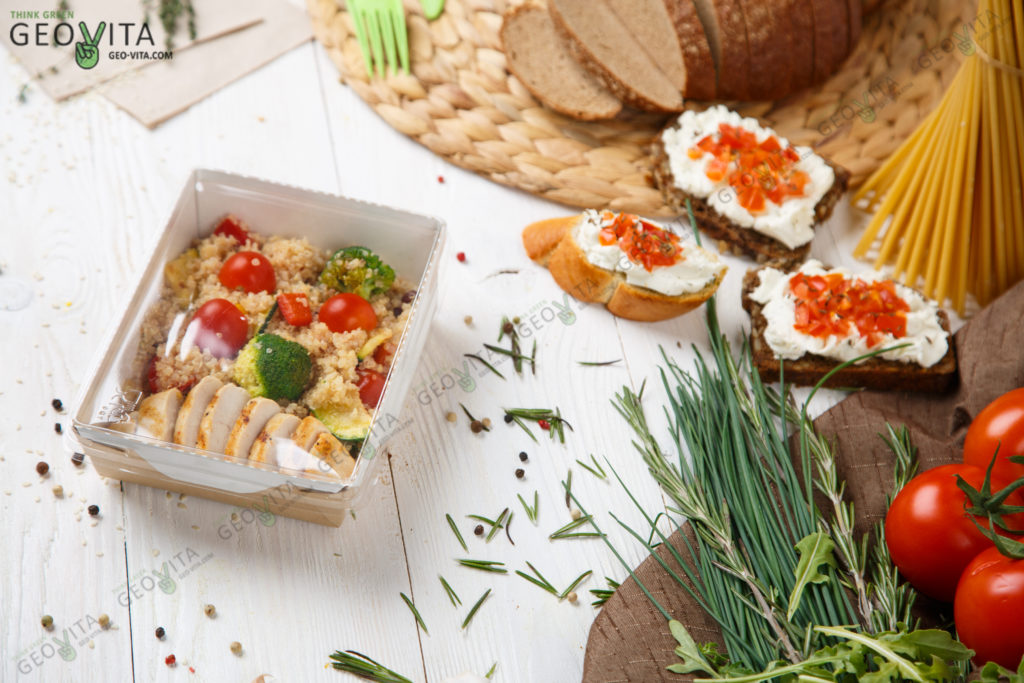 Крафтовый контейнер с прозрачной крышкой. Объем 1200 мл.