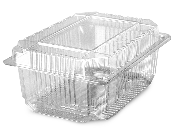Универсальный прозрачный контейнер с неразъемной крышкой. Подходит для салатов, овощей, холодных закусок, кондитерских изделий.