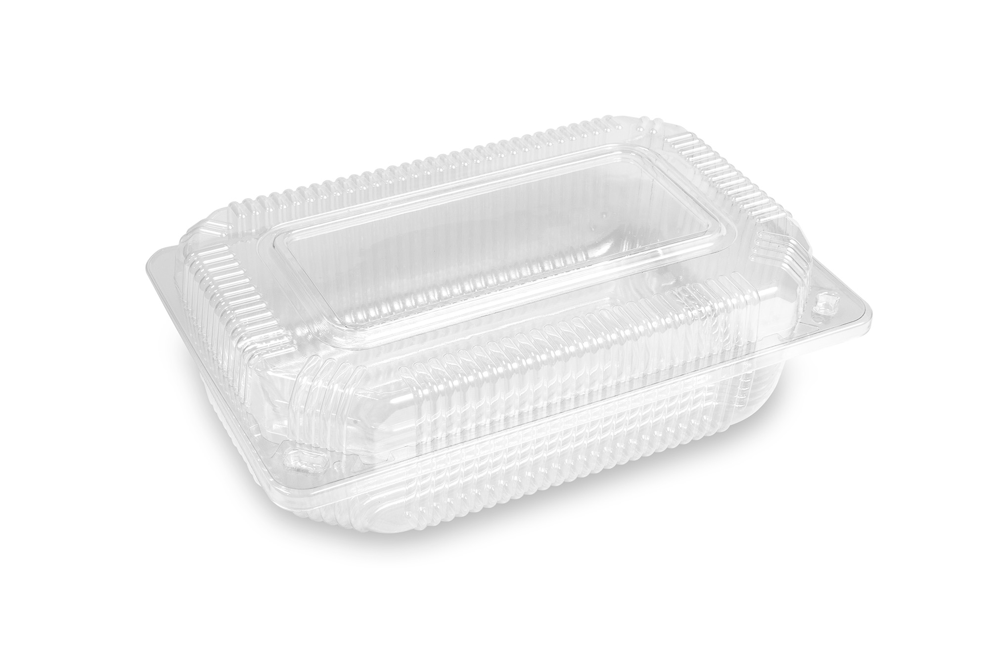 Универсальный прозрачный контейнер с неразъемной крышкой. Подходит для холодных закусок, кондитерских изделий.