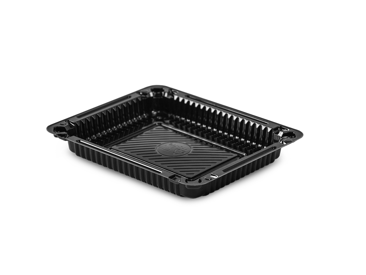 Дно контейнера РП-211 черного цвета без секций. Контейнер выполнен из пищевого полистирола и предназначен для реализации суши и роллов.