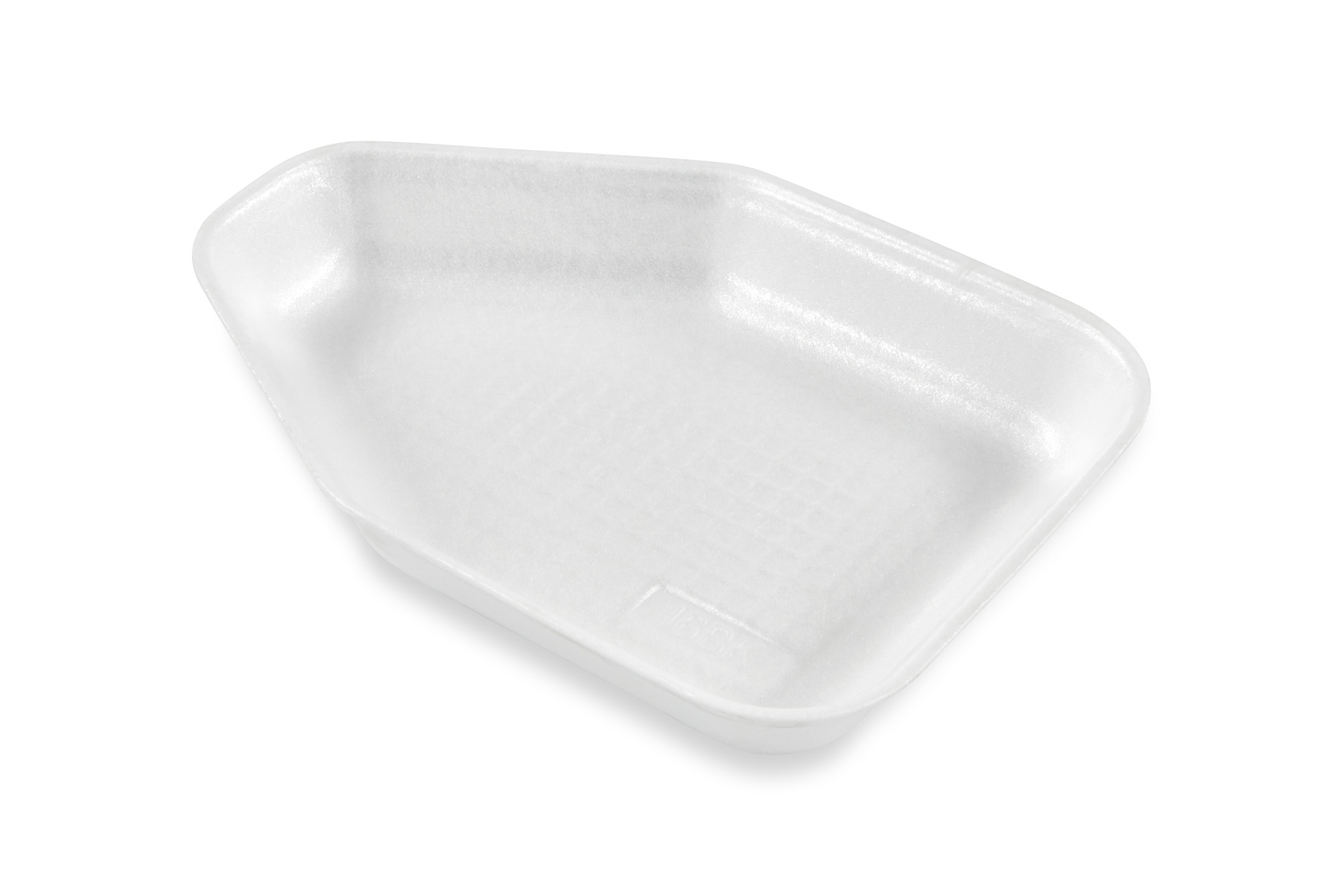 Лоток-подложка из вспененного полистирола белого цвета для упаковки и реализации куриной тушки. Лоток применяется совместно с пищевой пленкой. Лоток применяется в промышленном пищевом производстве на птицефабриках.