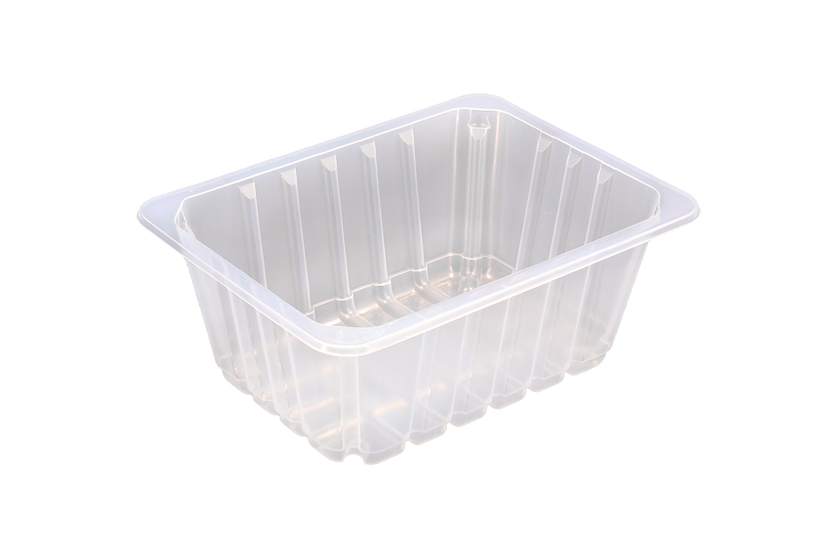 Одноразовый пищевой лоток размером 190х144х75 миллиметров для упаковки мясных полуфабрикатов, нарезки, овощей и морепродуктов. Лоток изготовлен из прозрачного пищевого полипропилена с высокими барьерными свойствами и имеет полезный объем 1050 мл.