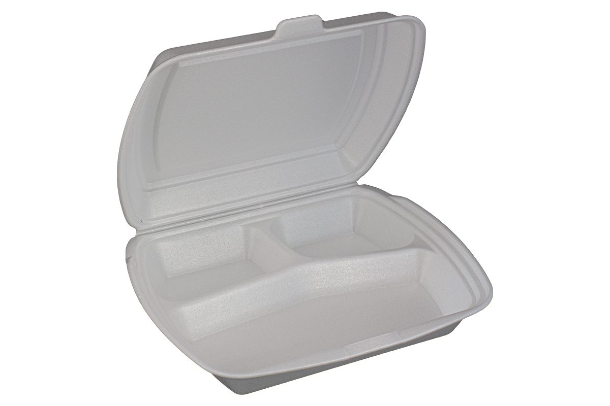 Одноразовый ланч-бокс изготовлен из вспененного полистирола белого цвета. Раздельные секции позволяют одну упаковку применять для разных блюд. Вспененный полистирол это инертный материал, который не вступает в реакцию с продуктами питания. На каждом изделии присутствует логотип "РоссПак", подтверждающий качество продукции. Основное преимущество ланч-бокса из вспененного полистирола - низкая теплопроводность, благодаря которой содержимое дольше сохраняет температуру.