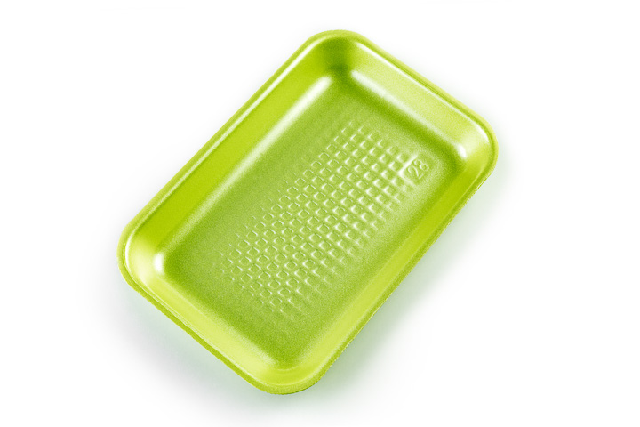 Лоток из вспененного полистирола, прямоугольной формы, салатового цвета. Лоток 28 упаковывается в пищевую ПВХ пленку вручную. Имеет невысокие бортики для фиксации продуктов питания.