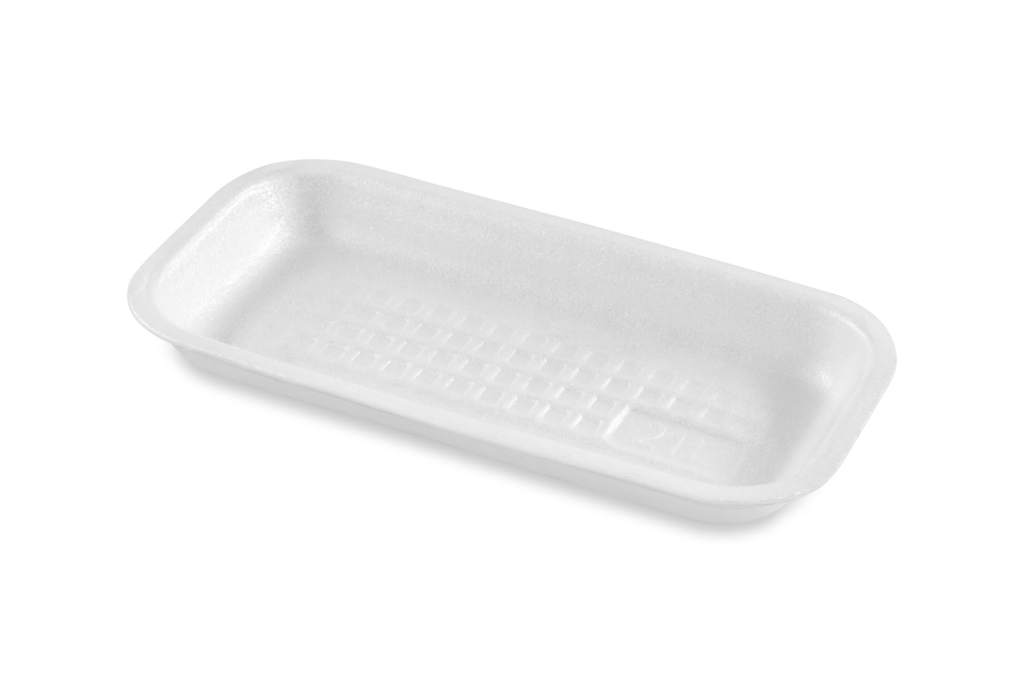 Лоток из вспененного полистирола, прямоугольной формы, белый. Имеет бортики.