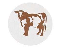 Этикетка "Говядина" для маркировки бортпитания. Белая надпись на коричневом фоне. Диаметр этикетки 20 мм.