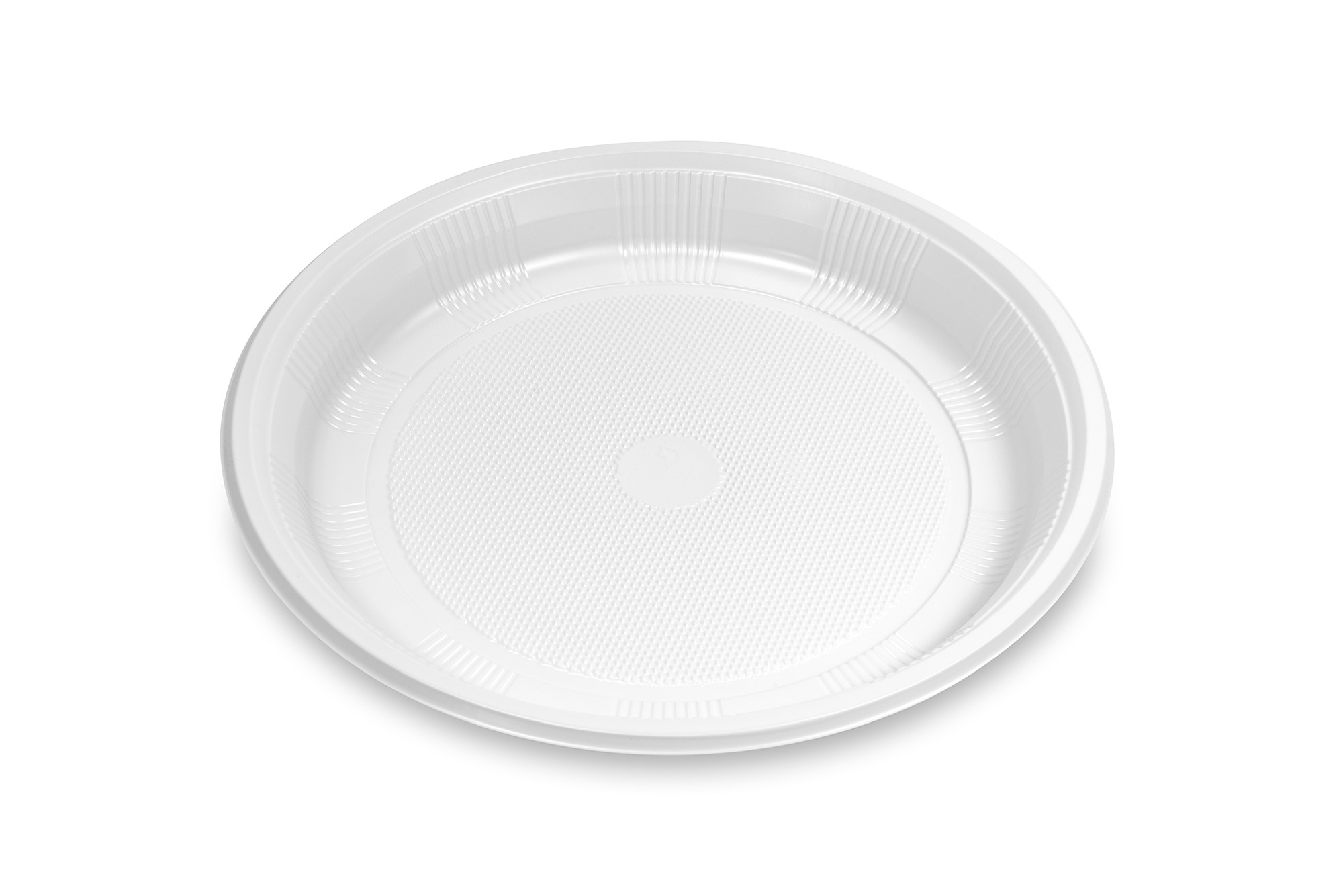 Одноразовая пластиковая тарелка белого цвета 205 мм