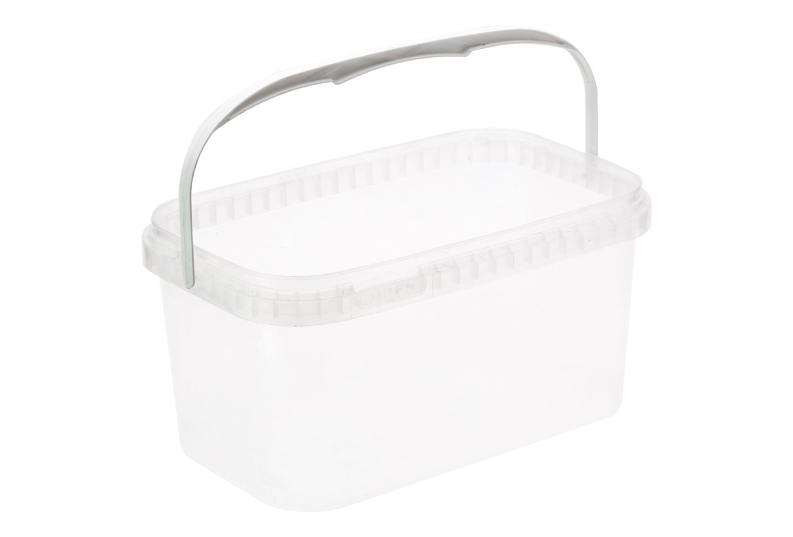 Пищевое прямоугольное ведро с пластиковой белой ручкой изготовлено из прозрачного полипропилена. Объем пищевого ведра 3,3 литра, размер горла 250х158 мм. Совместно с пищевым ведром рекомендуется использовать соответствующую ему крышку размером 250х158 мм.