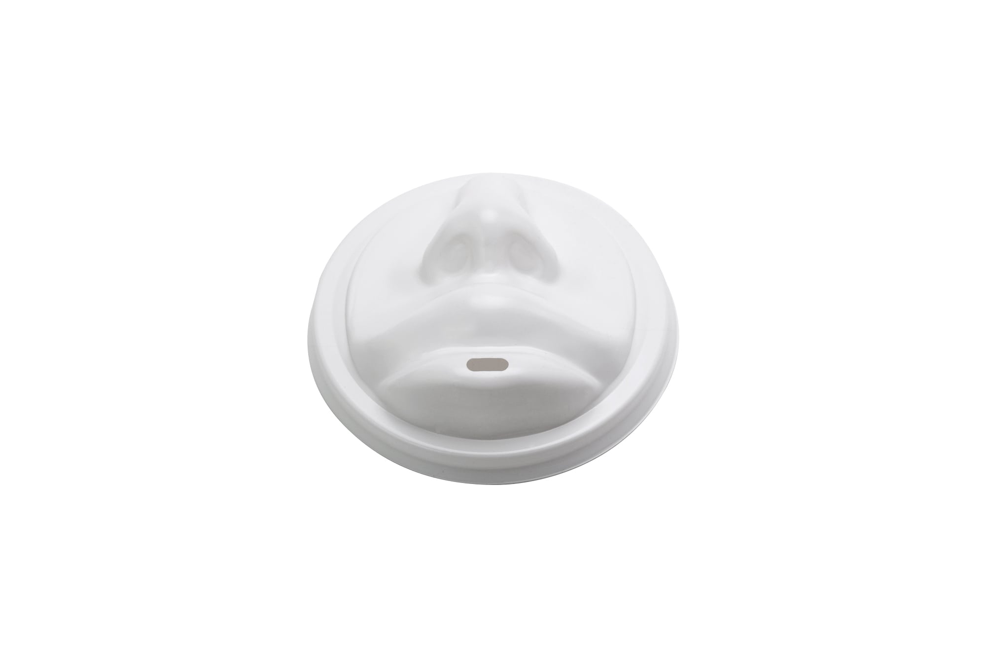 Крышка белая с питейником "Лицо". Подходит к бумажным стаканам под горячие напитки KF 300, 400, 500 мл.