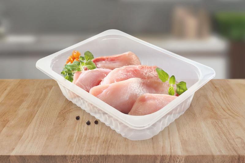 Осенью 2021 года компанией «РоссПак» был разработан и запущен в серийное производство новый прозрачный лоток из полипропилена. Специально разработанная форма с глубокими ребрами жесткости на боковых поверхностях обеспечивает высокую устойчивость лотка к фасовке продукции в автоматическом режиме и транспортировке. Являясь достаточно легким и прозрачным, лоток из полипропилена хорошо сохраняет форму и надежно защищает упакованный продукт.Полипропиленовый лоток под запайку является универсальным упаковочным решением – он идеально подходит для фасовки свежего мяса, мясных и рыбных полуфабрикатов; овощей и фруктов; кондитерских изделий, а также для фасовки готовых блюд на вынос в точках общественного питания.